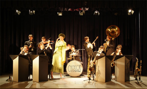 The Band is the youngest hot jazz orchestra in Italy playing the hot repertoire of the roaring twenties and thirties. The band has an average age which is in the early twenties having composed of only boys and girls from 15 to 24 years old. The “Chicago Stompers” J.B. wants to scholarly reproduce the “hot” atmosphere of the twenties using vintage instruments (like the “C-melody” saxophone or the percussions, completely reconstructed on the first models: bassdrum, woodblocks, cymbals set up on a spring and a leather cord (!) and dressing vintage clothes, tuxedo for men, and stilyshed clothes for women, including some original plumage! nach oben ▲